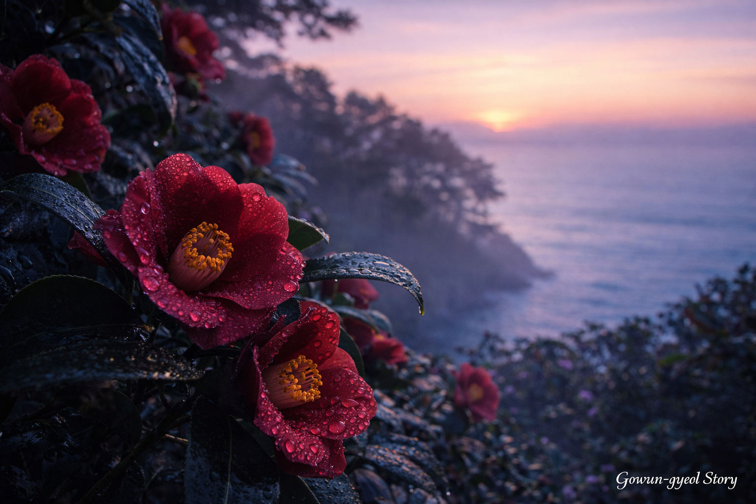 붉은 동백과 푸른 바다가 만나는 찰나의 기록 ⓒ 고운결스토리