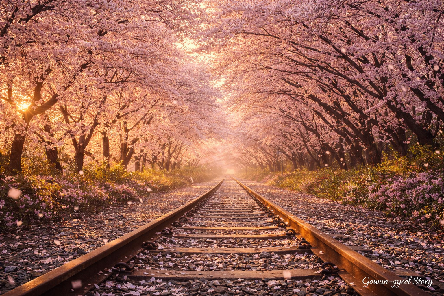 시간이 멈춘 철길 위로 내리는 벚꽃비 ⓒ 고운결스토리